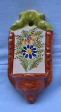 FOTO Nº11: BENDITERA DE CERAMICA MEDIANA DECORACION FLORAL MEDIDAS APROXIMADAS: 16CM DE LARGA X 9,5CM DE ANCHA. 18,50 EUROS.